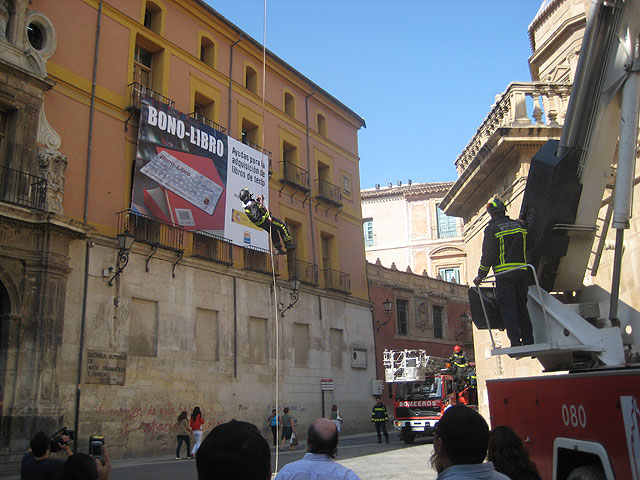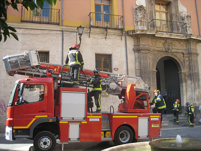 Asimismo, los escolares también han podido ver in situ el simulacro de extinción de incendios que el Cuerpo de Bomberos del Ayuntamiento de Murcia ha efectuado en la Escuela Superior de Arte Dramático y Danza de Murcia. Ha dado comienzo a las 11 horas y ha contado con un dispositivo formado por un vehículo de mando, una primera salida, dos autoescalas (de 37 y 18 metros de altura) y un vehículo de brazo articulado.