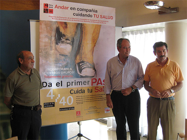 La Concejalía de Sanidad y Servicios Sociales del Ayuntamiento de Murcia, que dirige Fulgencio Cervantes, reanuda la campaña 4/40 para que los vecinos del municipio se animen a andar en grupos dirigidos por monitores, 40 minutos al día durante 4 días a la semana.