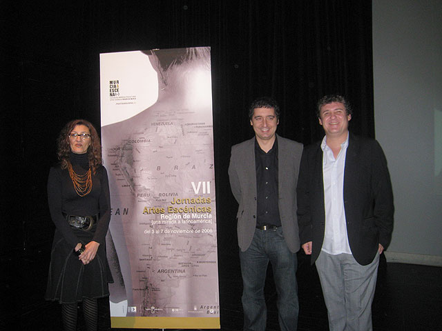 El consejero de Cultura y Turismo, Pedro Alberto Cruz, presentó esta mañana las VII Jornadas de MurciaaEscena que, bajo el título de ‘Una mirada a Latinoamérica’, se llevarán a cabo del 3 al 7 de noviembre en el Espacio 0 del Centro Párraga y en la sala de prensa de Caja Mediterráneo. También asistieron a la rueda de prensa la presidenta de la Asociación MurciaaEscena, Esperanza Clares, y el coordinador de las jornadas, Nacho Vilar.