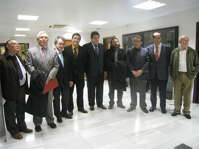 Foto: El consejero de Cultura y Turismo, Pedro Alberto Cruz, junto al presidente territorial de Caja Mediterráneo, Ángel Martínez; el rector de la Universidad de Murcia, José Antonio Cobacho, y el presidente del jurado del Premio Vargas Llosa y catedrático de la Universidad de Murcia, Victorino Polo, y miembros del jurado.