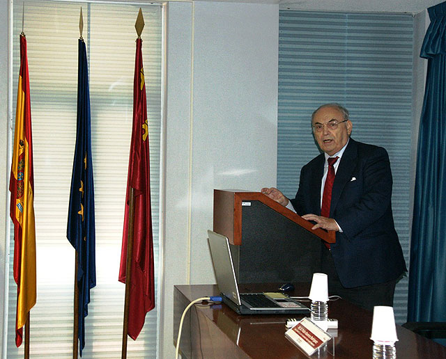 Fotos: En la primera imagen el doctor Máximo Poza durante su conferencia en la Arrixaca.