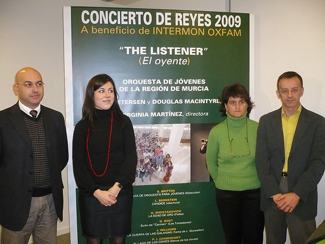El director general de Promoción Cultural, Antonio Martínez, presentó esta mañana el concierto de Reyes de la Orquesta de Jóvenes de la Región de Murcia (OJRM), que este año irá a beneficio de Intermon Oxfam. A la presentación han asistido la directora de la OJRM, Virginia Martínez, y la portavoz de Intermon Oxfam, María José Bataller.