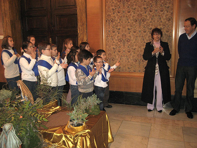 Los niños, en su mayoría pertenecientes al colegio de Santa María de Gracia, han estado acompañados por padres y profesores, y han realizado su actuación en presencia del Alcalde y de los concejales del Equipo de Gobierno, que para ello han interrumpido unos minutos la reunión de la Junta de Gobierno.
