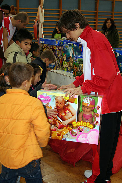 De esta forma, el Centro de Protección de Menores de Santo Ángel ha acudido esta mañana al Palacio de Deportes para recibir, de la mano de los jugadores del CB Murcia, la primera tanda de muñecos correspondiente a esta iniciativa solidaria.