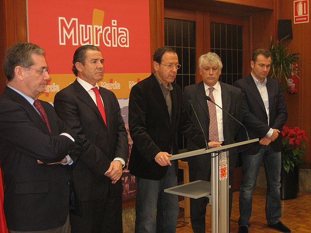 Han asistido también al encuentro el Teniente Alcalde de Deportes, Miguel Cascales, el vicepresidente del Real Murcia, Manuel Álvarez, y el consejero Guillermo Martínez-Abarca.
