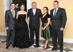 Foto1: Javier Arenas y Mercedes Pérez como Reyes Cristianos y Mª Dolores Sánchez y Raúl Luján como Reyes Moros con el presidente de la Federación de Moros y Cristianos de Murcia, Alfonso Gálvez Pérez.