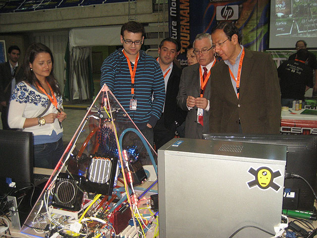 El Alcalde, Miguel Ángel Cámara, junto con el Rector, José Antonio Cobacho, han tomado buena nota de la incorporación de las nuevas tecnologías de la comunicación en todas sus vertientes durante la visita que ambos han realizado al “Murcia Lan Party”.