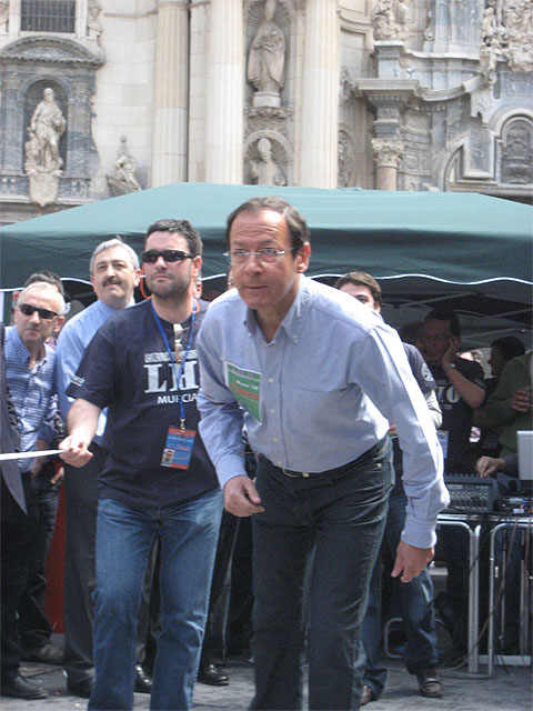 El Alcalde, Miguel Ángel Cámara, ha logrado el octavo puesto en el concurso de lanzamiento de Hueso de la Paz, tras alcanzar 12,86 metros. El evento ha tenido lugar esta mañana en la Plaza Belluga, dentro de la IV Exhibición de Lanzamiento de Huesos de Oliva 09, organizado por la Asociación Amigos de las Oliveras de Cieza en colaboración con el Consejo Local de la Juventud de Murcia.