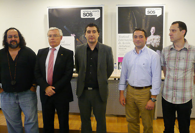 El consejero de Cultura y Turismo, Pedro Alberto Cruz, dio a conocer esta mañana los últimos datos relacionados con el Festival Estrella de Levante SOS 4.8 junto al concejal de Fiestas y Cultura Popular del Ayuntamiento de Murcia, Rafael Gómez, el rector de la Universidad de Murcia, Antonio Cobacho, el director artístico del festival, Jota Castro, y el director musical, Albert Salmerón.