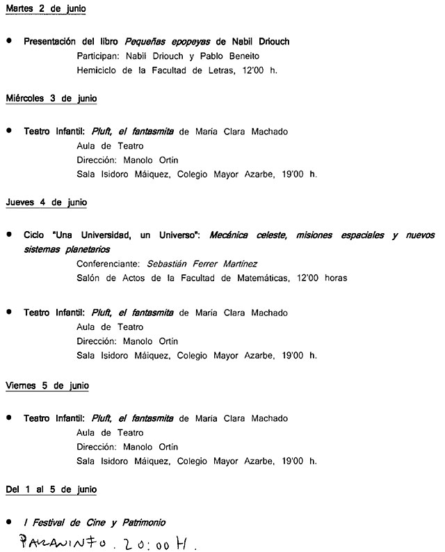 Murcia Noticias Actividades culturales de la Universidad de Murcia en la semana del 1 al 7 de junio 29/05/2009 Actividades culturales de la Universidad de Murcia en la semana del 1 al 7 de junio Fuente: Universidad de Murcia