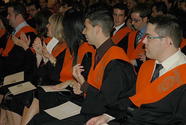 El acto concluyó con una calurosa felicitación general, por parte de la rectora y del presidente de la Universidad. Josefina García Lozano, alabó la necesaria solemnidad del acto y la destacó, como expresión y símbolo de la madurez y del profundo poso de conocimientos vertidos sobre los alumnos. “Queridos estudiantes, os animo a trabajar con fuerza y empeño confiando en vuestras capacidades, como medio para buscar oportunidades. Tenéis la gran responsabilidad de contribuir con vuestro trabajo sólido, riguroso y fundamentado en la Calidad, a que la UCAM sea cada vez más grande, fuerte y sólida ”. Por su parte, José Luis Mendoza recordó que la Universidad Católica nació con la misión de irradiar la fe y la cultura católicas y animó a los nuevos profesionales a contribuir el desarrollo económico y social en estos tiempos de crisis.