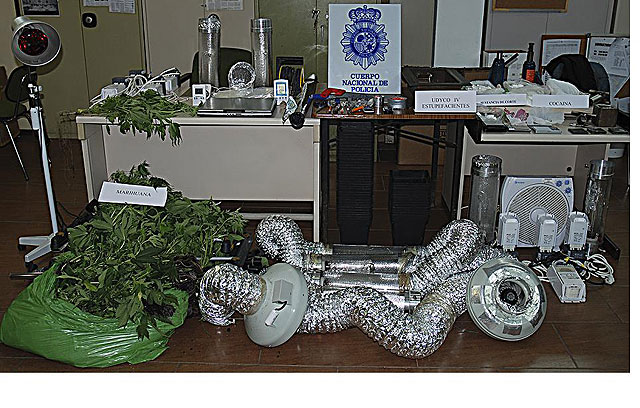 Estos elementos, junto con otros como la manipulación de los sistemas de suministro eléctrico del inmueble, confirmaron los indicios de los investigadores que, el día 25 de junio, tras recabar el correspondiente mandamiento judicial, procedieron a realizar una diligencia de entrada y registro en el citado domicilio, comprobándose que en una de las habitaciones de la vivienda se había instalado un complejo sistema para el cultivo de marihuana, que contaba con unas sesenta macetas de esta planta, asistidas por mecanismos de ventilación, focos y sistemas de extracción de gases.