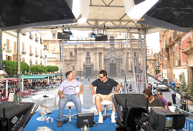 Hoy han concluido los preparativos y las primeras pruebas de emisión de los dos informativos que se realizarán desde la Plaza del Cardenal Belluga. La edición del mediodía, Noticias 1, estará conducida por Roberto Arce y Pilar Galán, mientras que la de la noche, Noticias 2, estará dirigida por los periodistas Matías Prats y Mónica Carrillo. En este último informativo se dedicará una amplia franja a divulgar contenidos vinculados a la celebración del Día de la Región.