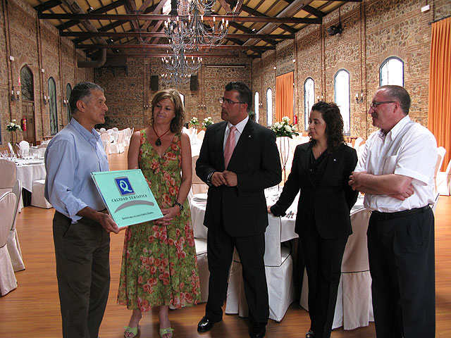 El director general de Promoción Turística, Ángel Campos, acompañado por la concejal de Turismo del Ayuntamiento de Murcia, Isabel Valcárcel, entregó hoy la placa Q de Calidad Turística al salón de celebraciones Casa de la Luz de Zarandona. Esta distinción premia la excelencia del servicio y los niveles de calidad de las instalaciones del establecimiento.
