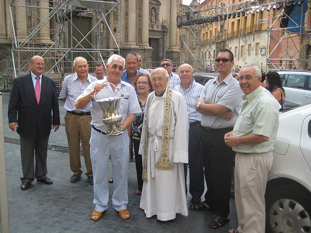 Tras la Eucaristía, el cura que ha oficiado la misa, Don Diego, de 94 años de edad, ha salido a la plaza del Cardenal Belluga para bendecir a los más de veinte taxis que circulan por la ciudad.