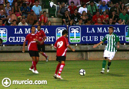 Murcia y Betis dos de los equipos que a priori tendrán que luchar por el ascenso hicieron una previa de lo podrán ser sus partidos de liga ayer noche en la manga, y ante lo visto en un partido carente de gol el Murcia se aproxima mas a lo que uno desearía para su equipo, un bloque, solido atrás, con toque en el mediocentro, bandas con velocidad y delanteros con disparo, ayer sin acierto pero que ilusionan.