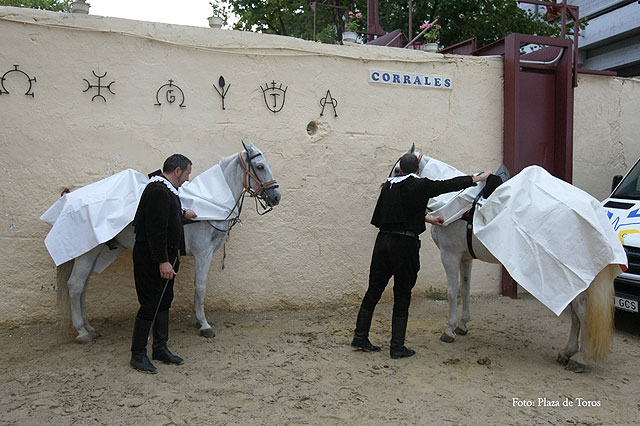 Para mañana se anuncia, si el tiempo no lo impide, una novillada con picadores en la que actúan Raúl Sáez, Luis Miguel Casares y la murciana Conchi Ríos, que se presenta con caballos ante sus paisanos.