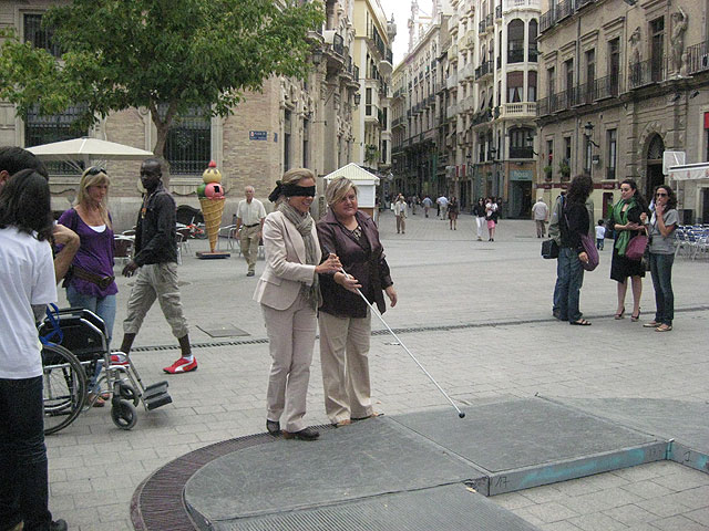 Adela Martínez-Cachá en el espacio instalado en Santo Domingo con motivo de la Semana de la Movilidad. Esta mañana se han realizado pruebas de accesibilidad para personas discapacitadas, en colaboración con Famdif