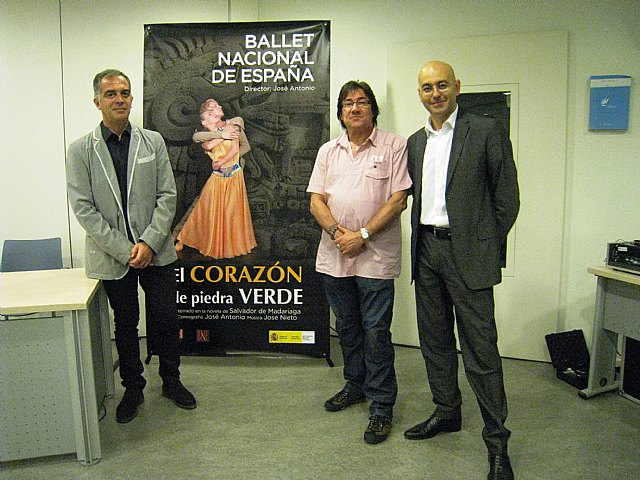 El Ballet Nacional de España dará comienzo el lunes día 12 de octubre, a las 20:30 horas, a la Temporada de Danza 2009-2010 del Auditorio Regional ‘Víctor Villegas’ de Murcia con su espectáculo ‘El corazón de piedra verde’, inspirado en la novela homónima de Salvador de Madariaga y dirigido por José Antonio. El director general de Promoción Cultura, Antonio Martínez, presentó esta mañana la obra junto al director del Auditorio, Antonio Contreras, y al director de la compañía.