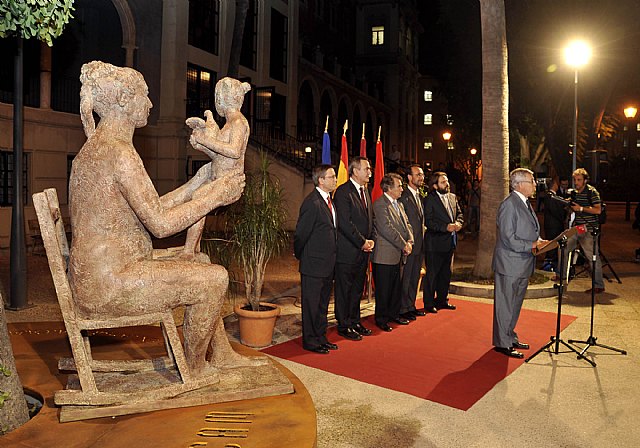 En el acto de descubrimiento de la escultura, que se denomina “Atardecer en la Huerta”, intervinieron el rector de la Universidad, José Antonio Cobacho, el consejero de Universidades, Empresa e Investigación, Salvador Marín, el delegado del Gobierno en Murcia, Rafael González, y el presidente del Consejo Territorial en Murcia de la citada entidad financiera, Ángel Martínez.