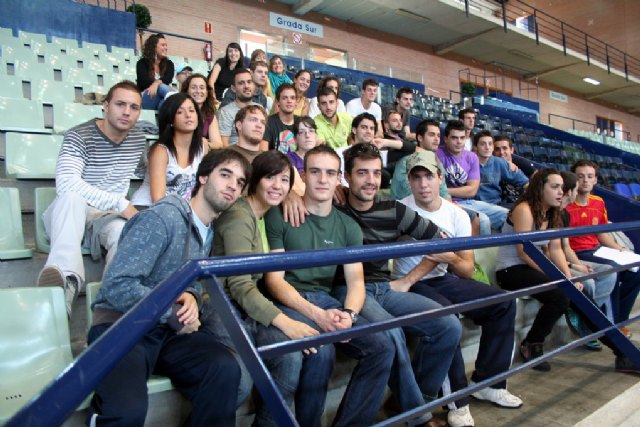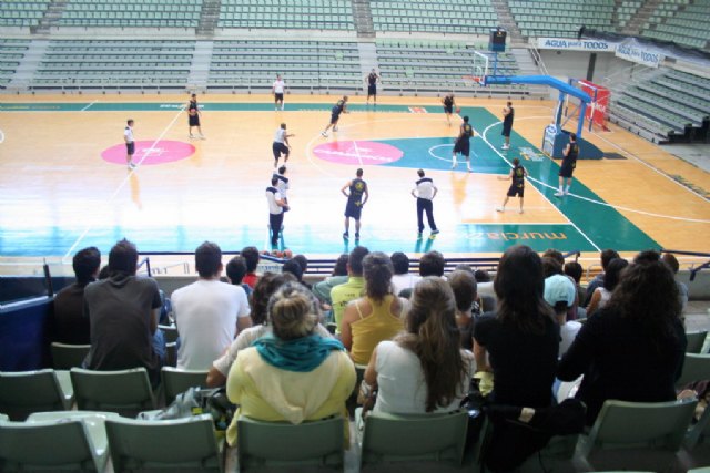 28/10/2009 - En la sesión de trabajo matinal del Club Baloncesto Murcia había una novedad importante y es que los alumnos del 2º curso del Ciclo Formativo de Grado Superior en TAFAD (Técnico de Actividades Físicas y Deportivas) del Colegio Parra han podido presenciar desde la grada la totalidad de la misma.