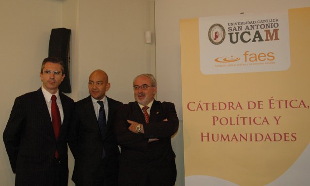 Entre las novedades presentadas por la UCAM para el curso 2009-2010, cabe destacar la puesta en marcha de la Cátedra `Ética Política y Humanidades´, creada en colaboración con la Fundación FAES, que dirigirá el ex presidente del Gobierno y presidente de la Fundación, José María Aznar. El secretario General de la Fundación FAES, Jaime García Legaz, destacó durante la reciente presentación que “este nuevo órgano docente tiene un perfil de excelencia académica”. Además de José María Aznar, la Cátedra contará con otros ponentes de excepción como el vicepresidente de la Cámara de Diputados de Italia, Rocco Buttiglione, los ex Ministros del Interior y patronos de FAES, Jaime Mayor Oreja, y Ángel Acebes, el presidente de la CARM, Ramón Luis Valcárcel, el ex Ministro y ex Presidente de la Comunidad Valenciana, Eduardo Zaplana, o el profesor de la Universidad de Bolonia y consultor del Papa Benedicto XVI, Stefano Zamagni, entre otros.