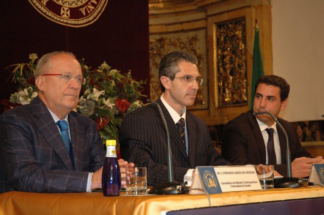 El Catedrático de Historia Contemporánea de la Universidad de Deusto, y Premio Nacional de Historia 2008, Fernando García de Cortázar, ha destacado que “en España lo que es impredecible no es el futuro, es el pasado” con motivo de lo que ha denominado como falsificación de parte de la historia de España. El historiador ha realizado estas declaraciones en la conferencia `Falsificación histórica y aberraciones lingüísticas’ que ha impartido esta mañana en la UCAM, y que está enmarcada en el programa divulgativo de la Cátedra de Ética, Política y Humanidades de la Universidad, en colaboración con la Fundación FAES, y que dirige el ex -presidente del Gobierno, José María Aznar.