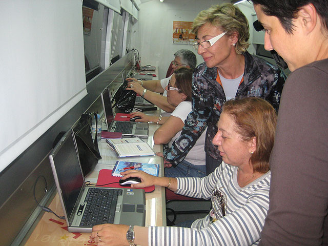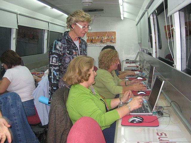 La Concejalía de Bienestar Social, Políticas de Igualdad y Participación Ciudadana del Ayuntamiento de Murcia, que dirige María del Carmen Pelegrín, ha instalado un autobús Aula-Móvil para impartir cursos de formación en nuevas tecnologías para mujeres y, según las previsiones, van a participar más de 120 mujeres de los diferentes centros de la mujer del municipio.
