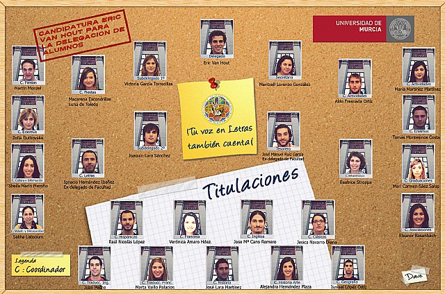 El candidato a delegado de facultad, Eric Van Hout, acaba de presentar su campaña electoral que lleva por nombre “Porque sin letras, no hay paraiso” con la que pretende concienciar a todos los alumnos de la facultad de letras de la Universidad de Murcia de la importancia que han de tener los alumnos en estas elecciones, puesto que cada voto representa una ilusión, según informó en un comunicado el candidato.
