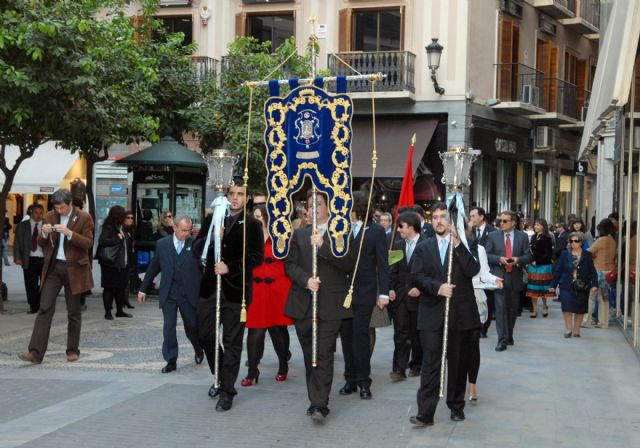 Alumnos y profesores de Historia del Arte de la Universidad de Murcia participaron hoy en la procesión organizada en honor del patrón de los plateros, San Eloy, que salió desde el campus de la Merced y que finalizó en la iglesia de San Bartolomé, donde se venera una imagen del santo obra de Salzillo.