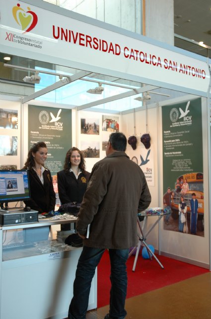 La UCAM participa en el XII Congreso Estatal de Voluntariado que se ha inaugurado esta mañana en el Auditorio y Centro de Congresos de Murcia. La Universidad, a través del stand instalado en el Auditorio, está repartiendo información sobre las actividades de voluntariado organizadas por ella y por el Instituto Internacional de Caridad y Voluntariado Juan Pablo II (IICV). Además, los visitantes podrán obtener información sobre el Máster en Desarrollo Social que imparte la UCAM.
