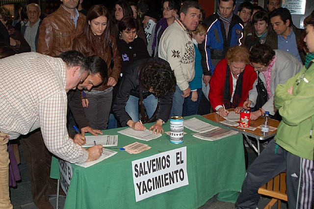 Al terminar, los más de 400 asistentes han procedido a rodear el yacimiento con una cadena humana, y portando carteles que rezaban "Salvemos el Yacimiento".