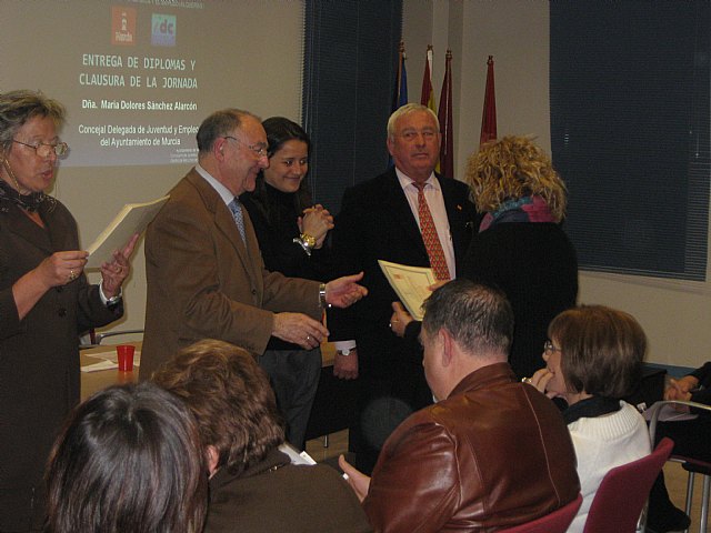 En la jornada ha participado la Concejal de Juventud y Empleo, María Dolores Sánchez; el presidente de la Junta Municipal de Alquerías, Francisco Zamora; el presidente del Instituto de Desarrollo Comunitario, José Molero; el Jefe de Empleo del Ayuntamiento de Murcia, Luis Foulquié; la Orientadora Laboral del Centro de Recursos de Alquerías, Margarita Villalgordo; la directora del INEM de la oficina de Molina de Segura, Amparo Moreno; la Coordinadora del Centro de Recursos, Victoria Vara; el responsable del servicio de información de la red PuntoPyme, Juan Antonio Gutiérrez; y el Consultor del Servicio de Asesoramiento Empresarial del Centro de Recursos, Héctor Michilot.