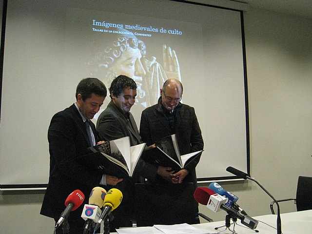 El consejero de Cultura y Turismo, Pedro Alberto Cruz, junto con el comisario Gerardo Boto, presentaron hoy la exposición ‘Imágenes Medievales de Culto. Tallas de la Colección El Conventet’, que será inaugurada a las 20.00 horas y permanecerá en el Museo Arqueológico de Murcia hasta el próximo 11 de abril.