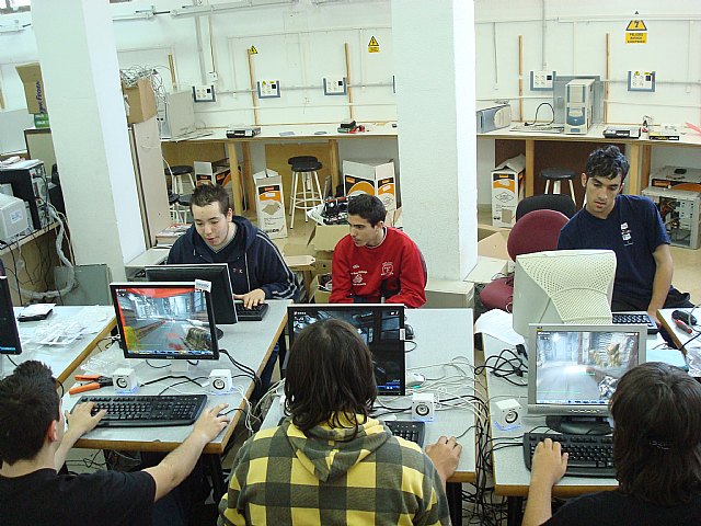 Los alumnos del programa de Cualificación Profesional Inicial, del curso de Servicios Auxiliares de Informática, de la Concejalía de Juventud y Empleo, han organizado hoy una Lan Party para intercambiar conocimientos y juegos.