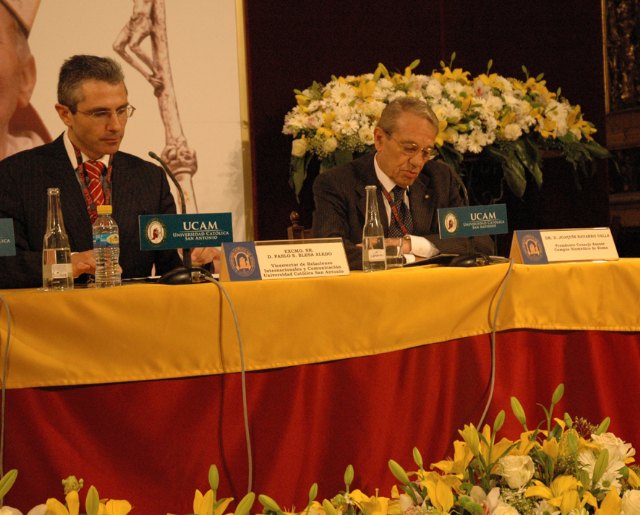El prefecto de la Congregación para el Culto Divino y la Disciplina de los Sacramentos, Cardenal Antonio Cañizares, ha inaugurado el simposio acompañado por el presidente de la Universidad, José Luis Mendoza, por el obispo de Cartagena, monseñor José Manuel Lorca Planes y por la rectora, Josefina García Lozano.