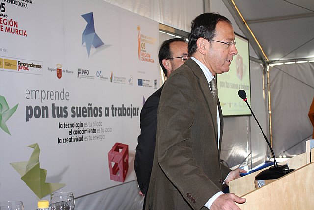 El fomento del espíritu emprendedor en la Región tiene hoy su cita anual con ocasión del V Día de la Persona Emprendedora. Organizado por la Consejería de Universidades, Empresa e Investigación, a través del Instituto de Fomento, y el Ministerio de Industria. Se celebra en el Cuartel de Artillería, y en su inauguración ha participado el Alcalde de Murcia, Miguel Ángel Cámara, junto con el consejero, Salvador Marín.