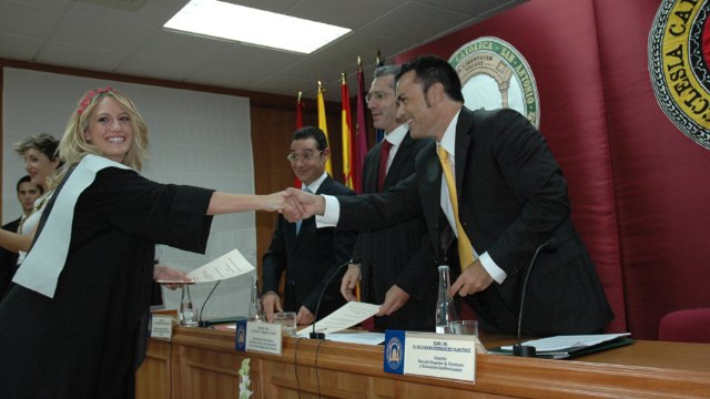En el acto académico ha intervenido, junto al vicerrector de Relaciones Internacionales y de Comunicación, Pablo Blesa, el director de la Escuela Superior de Protocolo, Salvador Hernández, así como el padrino de los alumnos, el secretario general de la Consejería de Presidencia y Admistración Pública de la CARM, José Gabriel Ruiz.