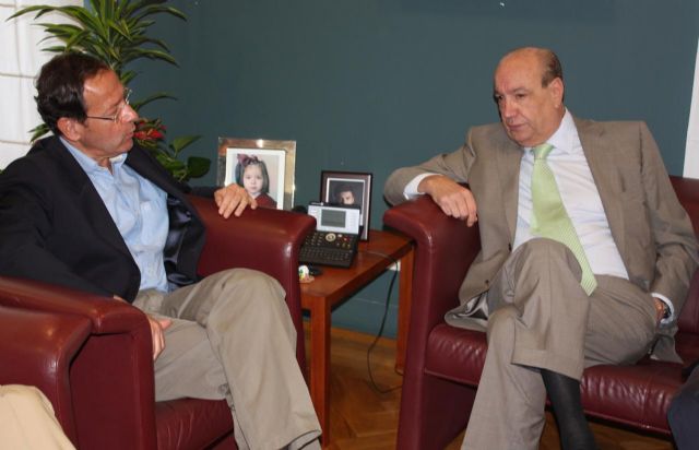 El Alcalde de Murcia, Miguel Ángel Cámara, acompañado por el Teniente de Alcalde de Deportes, Miguel Cascales, ha mantenido esta mañana una reunión con la directiva del Real Murcia, presidida por Jesús Samper.