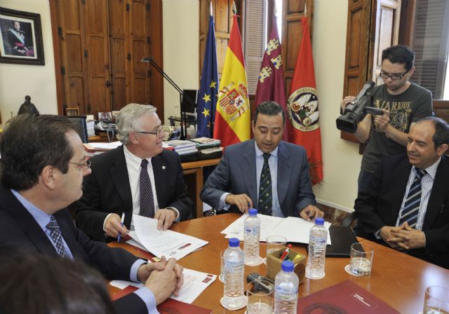 Los convenios suscritos hoy en el edificio de Convalecencia posibilitan asimismo el reconocimiento por la Universidad de Murcia de los mencionados cursos y seminarios y la concesión por parte de estas entidades profesionales de becas de matrícula para actividades formativas.