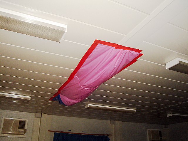 Recordar que, en estos momentos, la cubierta de la guardería municipal consta de una capa translúcida, agujereada tras una fuerte granizada, que aún no se ha reparado.