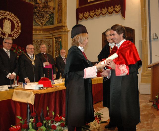 Por su parte, el presidente de la Comunidad Autónoma de la Región de Murcia, Ramón Luis Valcárcel, ha mostrado al Presidente de la UCAM su acierto por la investidura de Aznar como Doctor Honoris Causa. El Presidente de la CC.AA. ha subrayado las palabras del ex presidente del Gobierno como coherentes, contundentes y precisas. Además, Valcárcel ha dedicado unas palabras a la Universidad Católica a la que ha definido como "un lugar donde siempre respiro verdad", y de la que ha destacado la calidad de todas sus enseñanzas.
