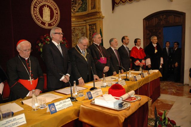 El prefecto de la Congregación para el Culto Divino y la Disciplina de los Sacramentos, cardenal Antonio Cañizares ha presidido la Eucaristía del Acto de Apertura del Curso. Durante la homilía, ha señalado que "abrimos este curso académico en una situación en que se contempla la secularización externa e interna a la Iglesia que padecemos, junto con un laicismo radical y agresivo que se nos impone, así como un oscurecimiento y quiebra de lo humano y moral graves". Asimismo, ha incidido en que "la UCAM, en comunión plena con la Iglesia y su Magisterio, debe posibilitar una edificación de una nueva humanidad, que no es posible sin el arraigo y la fundamentación en la Palabra de Dios, en la oración, en la Eucaristía, y en vivir conforme al Evangelio. Así será posible que quienes reciban su formación aquí estén dispuestos y preparados para la misión evangelizadora".