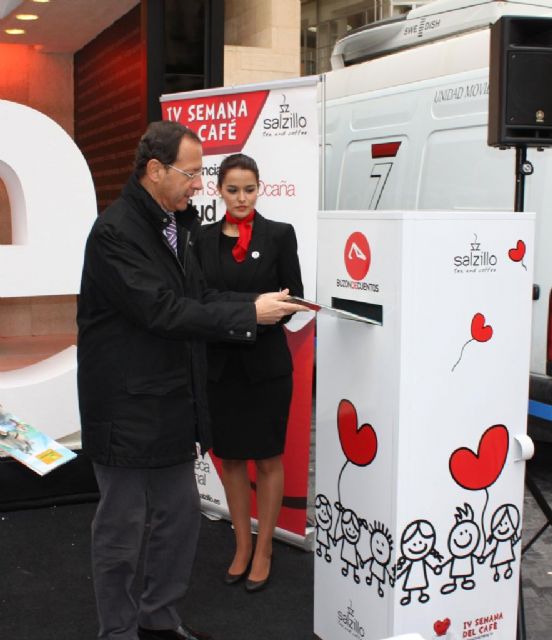 El Alcalde, Miguel Ángel Cámara, acompañado por el periodista Ramón Sánchez-Ocaña, la profesora de Nutrición y Bromatología María Antonia Murcia, y los responsables de Salzillo Tea and Coffee, ha inaugurado esta mañana la IV Semana del Café organizada por esta empresa murciana. La iniciativa, que en esta edición se ha organizado bajo el título “Café + Salud”, ha tenido lugar en la Plaza Belluga.
