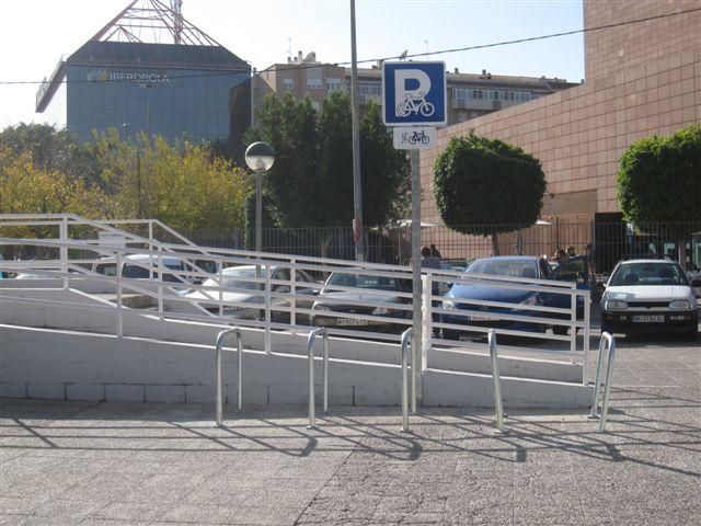 Los aparcabicis consisten en tubos de acero de 50 milímetros de diámetro doblados en forma de U invertida. Cada uno tiene un metro de alto y están separados unos de otros 80 centímetros. Cada aparcabici contiene 5 unidades, y están señalizados con ‘Aparcamiento para bicis’.