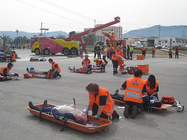 El simulacro realizado por más de 80 voluntarios de Protección Civil del municipio de Murcia, Bomberos y personal sanitario y de emergencias ha sido todo un éxito. Se trataba de actuar en caso de vuelco de un autobús con gran cantidad de personas accidentadas. La Concejal de Empleo, Protección Civil y Cooperación al Desarrollo, Beatriz Hontoria, ha asistido al simulacro, que se ha realizado en La Fica.