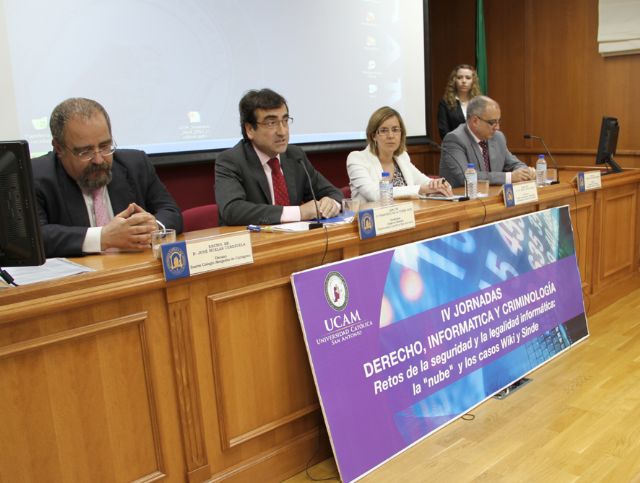 Luis Enrique Corredera ha analizado Wikileaks desde un punto de vista técnico y organizativo, prestando especial atención a la estrategia de resolución de problemas desarrollada por sus gestores en base a eludir las legislaciones propias de aquellos países en los que opera, con objeto de evitar su cierre. A continuación, ha relacionado estas tácticas, con las técnicas de difusión ilegal de contenidos en la red, protegidos por propiedad intelectual, perseguidas por la Ley Sinde. Tras las conferencias ha tenido lugar una mesa redonda, sobre Seguridad, Tecnología y Derecho, ante las novedades del nuevo paradigma del Cloud Computing, en la que han intervenido además de los conferenciantes, los vicedecanos de Derecho e Ingeniería Informática, Francisco de la Torre y Belén López Ayuso, el director de la Escuela de Criminología de la UCAM, José María Caballero, y el Decano del Colegio de Abogados de Cartagena, y especialista en Derecho de Nuevas Tecnologías y Comercio Electrónico, José Muelas Cerezuela. De la Torre y López Ayuso han destacado como objetivos fundamentales de esta actividad formativa, mostrar los retos de los nuevos paradigmas tecnológicos en el ámbito del Cloud Computing, la Seguridad, y el Derecho, y analizar las tendencias, problemas de seguridad y desafíos, derivados del actual proceso de modernización de la Justicia.
