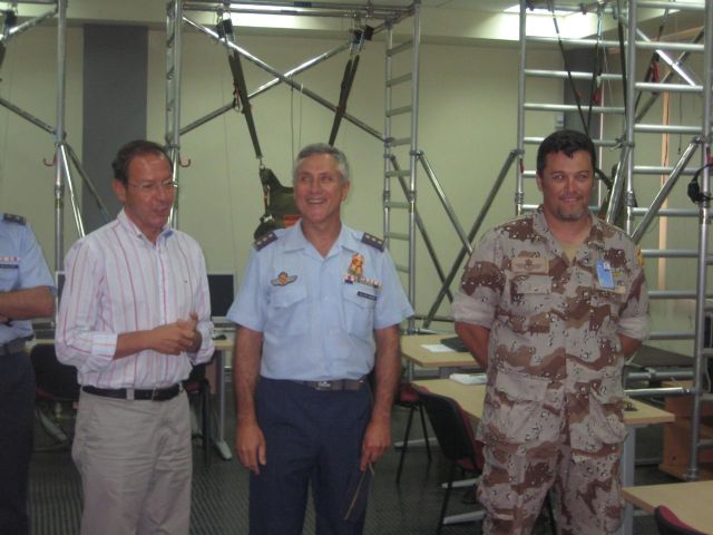 El Alcalde ha recorrido las diversas instalaciones de la Base, incluido el simulador de caída libre o túnel de viento y la exposición permanente de material del Escuadrón de Zapadores Paracaidistas. Además, Cámara también ha visitado el simulador de apoyo aéreo (Simfac).