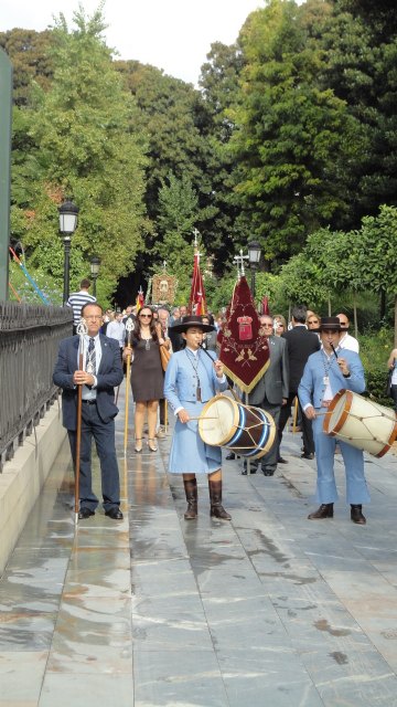 La procesión con el Simpecado, máxima representación de la Hermandad del Rocío, dio comienzo a las 11.30 abriendo el cortejo los tamborileos seguidos de todos los estandartes, varas y  Hermandades y unos 100 hermanos.
