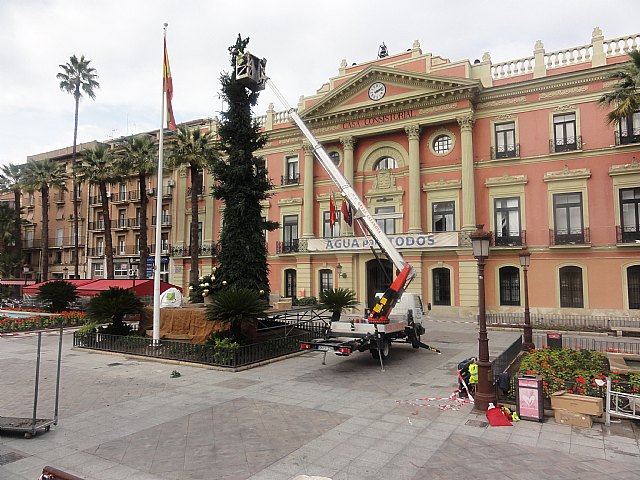 La concejalía de Turismo, que dirige Miguel Cascales, ha comenzado hoy la instalación de un gran árbol de Navidad como nuevo motivo decorativo.